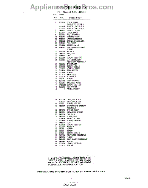 Parts for Whirlpool SDU40011: 05 - Section Parts
