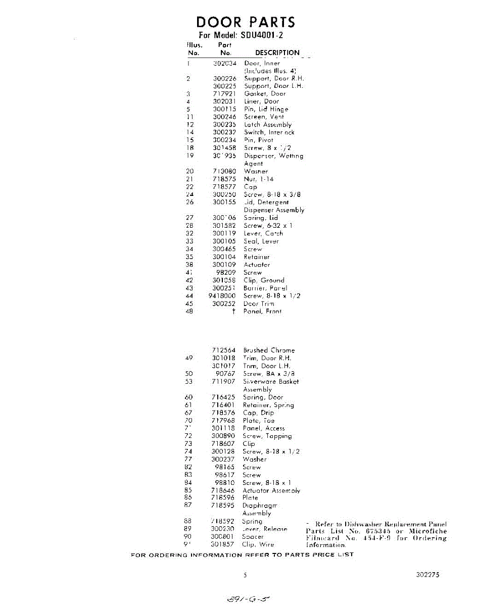 Parts for Whirlpool SDU40012: 05 - Section Parts