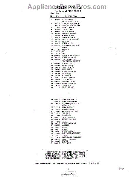 Parts for Whirlpool SDU50011: 05 - Section Parts