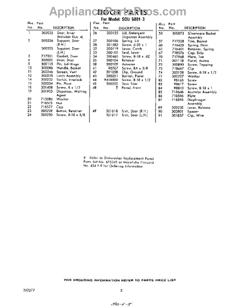 Parts for Whirlpool SDU50013: 05 - Section Parts