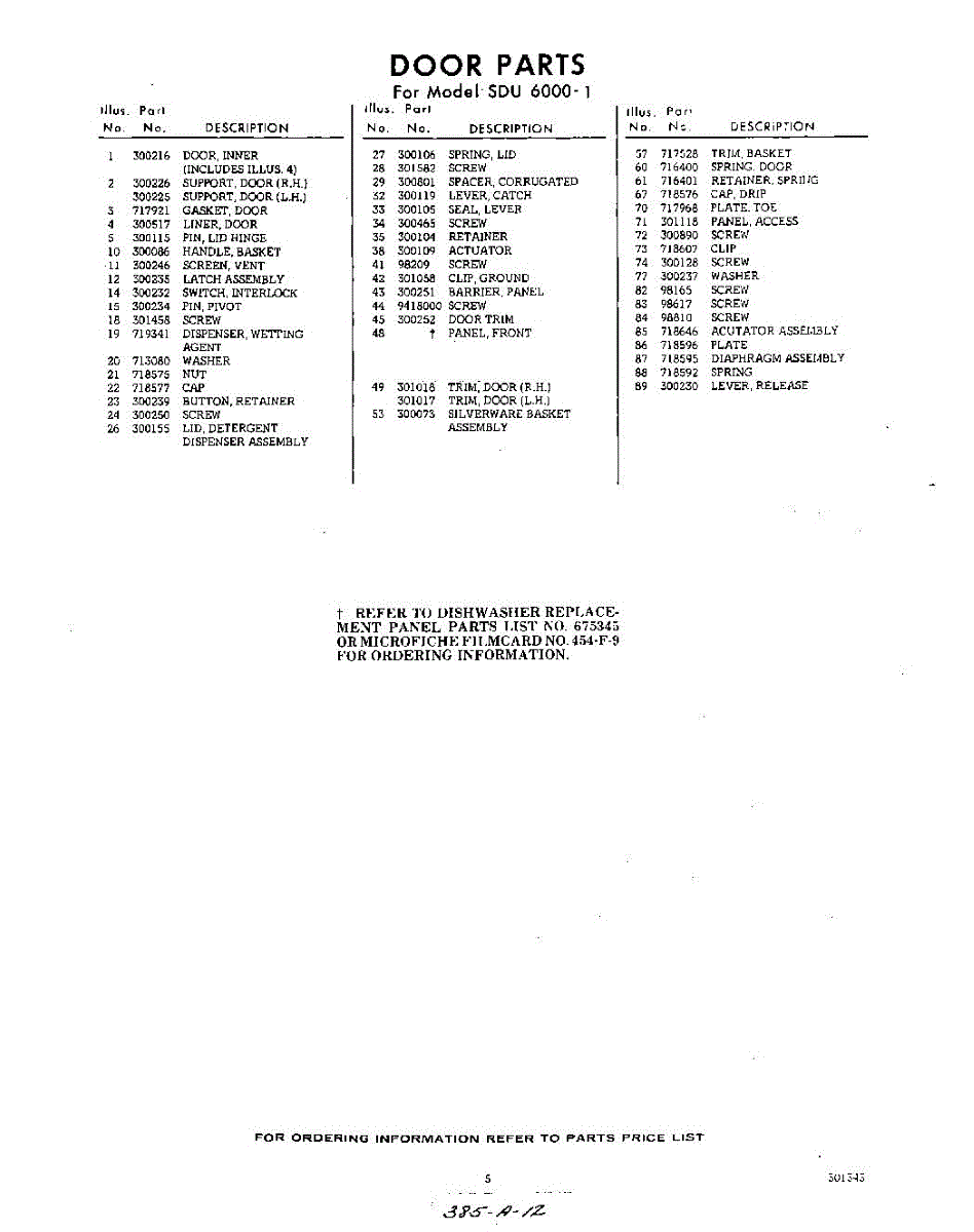 Parts for Whirlpool SDU60001: 05 - Section Parts