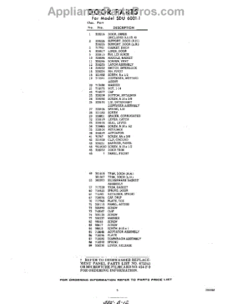 Parts for Whirlpool SDU60011: 05 - Section Parts