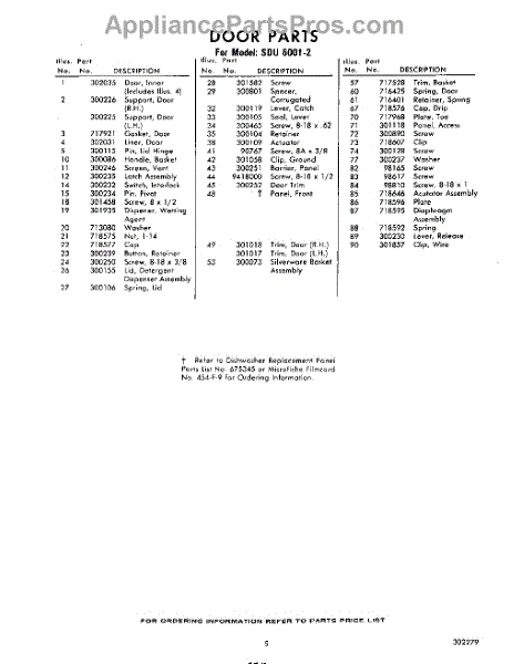 Parts for Whirlpool SDU60012: 05 - Section Parts