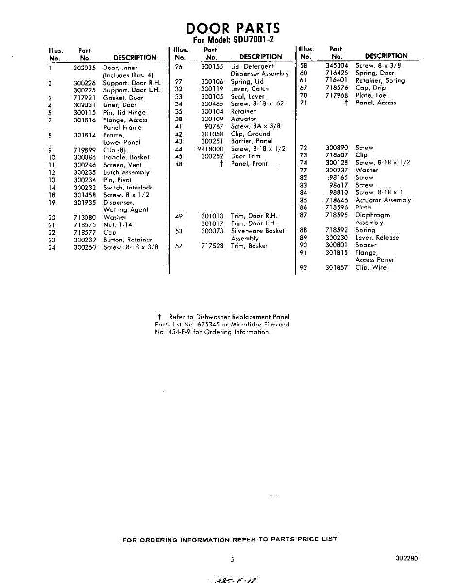 Parts for Whirlpool SDU70012: 05 - Section Parts