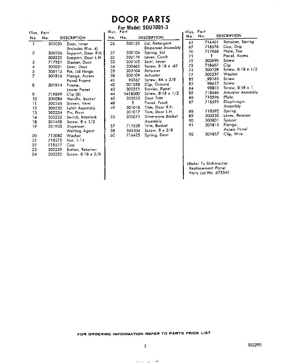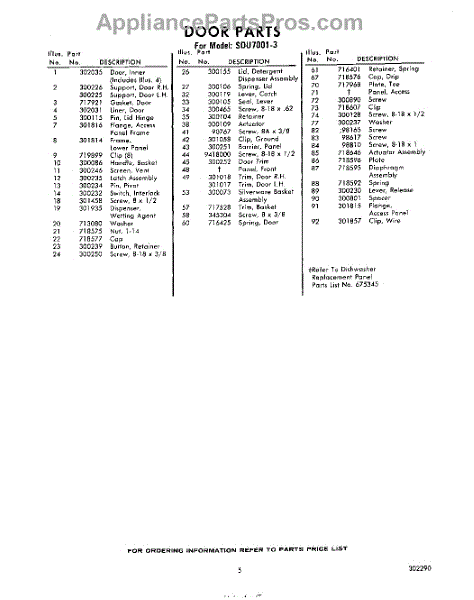 Parts for Whirlpool SDU70013: 05 - Section Parts