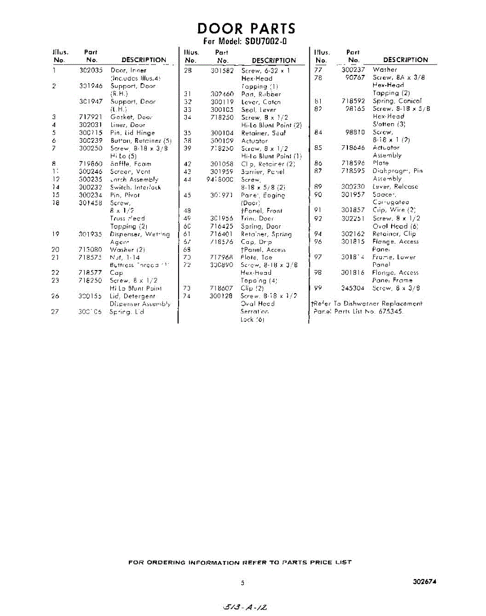 Parts for Whirlpool SDU70020: 05 - Section Parts
