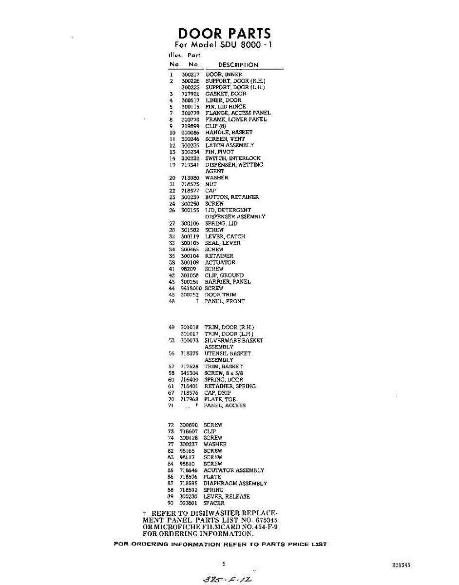 Parts for Whirlpool SDU80001: 05 - Section Parts