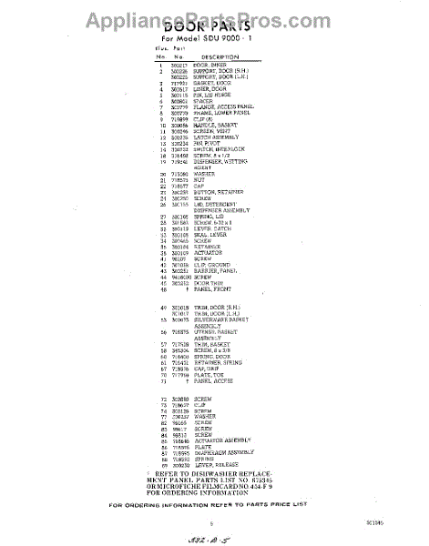 Parts for Whirlpool SDU90001: 05 - Section Parts