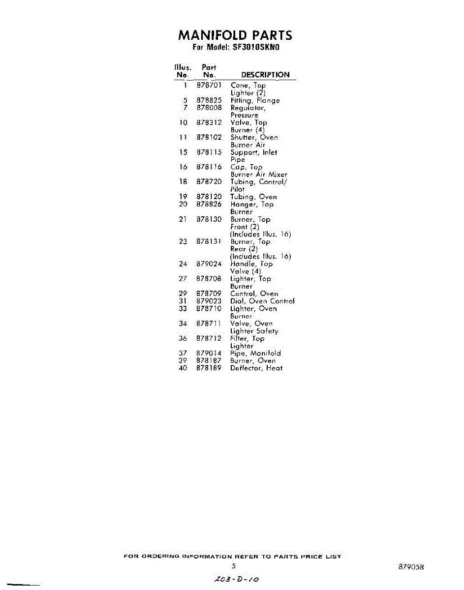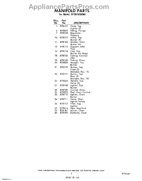 Parts for Whirlpool SF3010SKN0: 05 - Section Parts