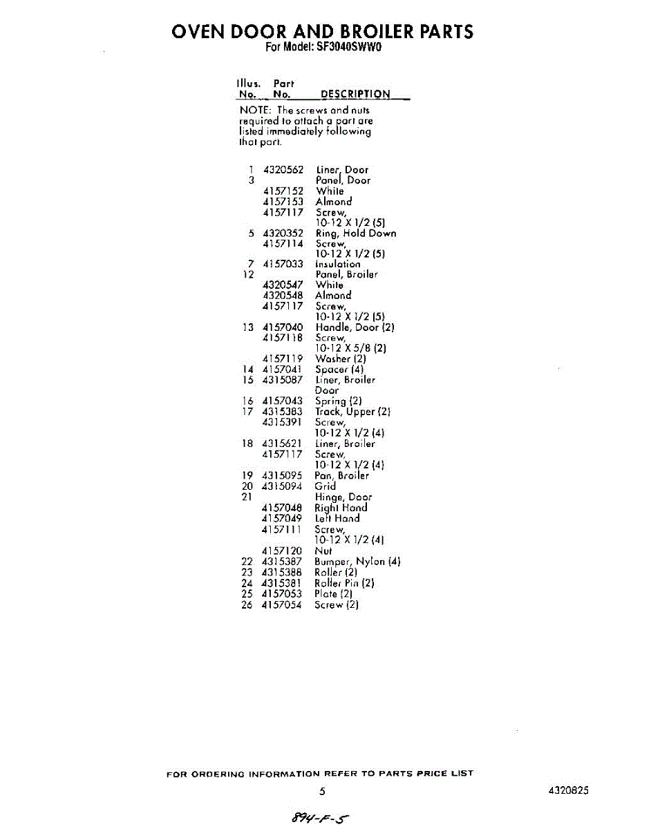 Parts for Whirlpool SF3040SWW0: 05 - Section Parts