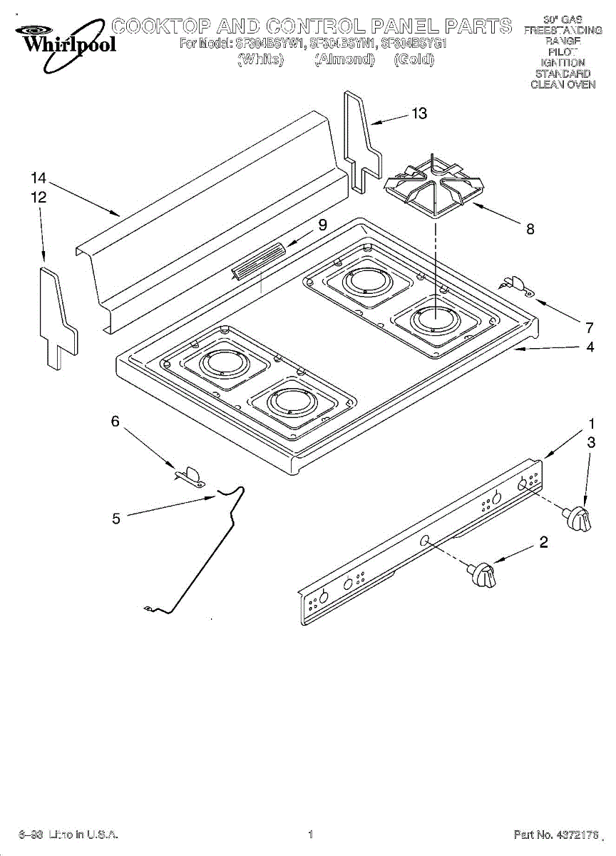 Parts for Whirlpool SF304BSYN1: 01 - Section Parts