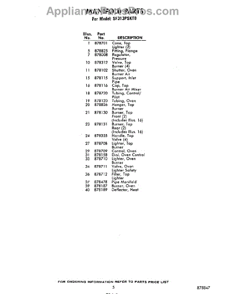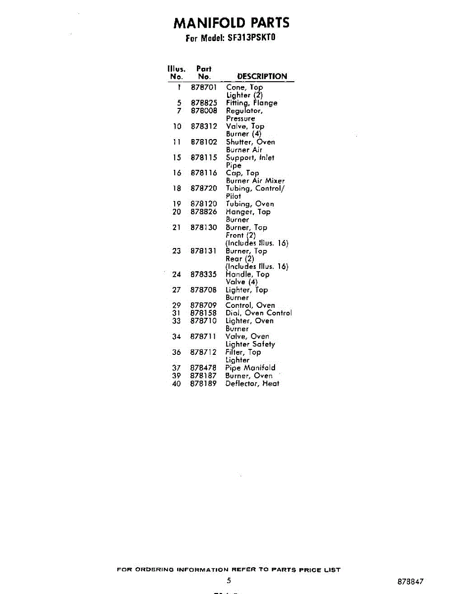 Parts for Whirlpool SF313PSKT0: 05 - Section Parts