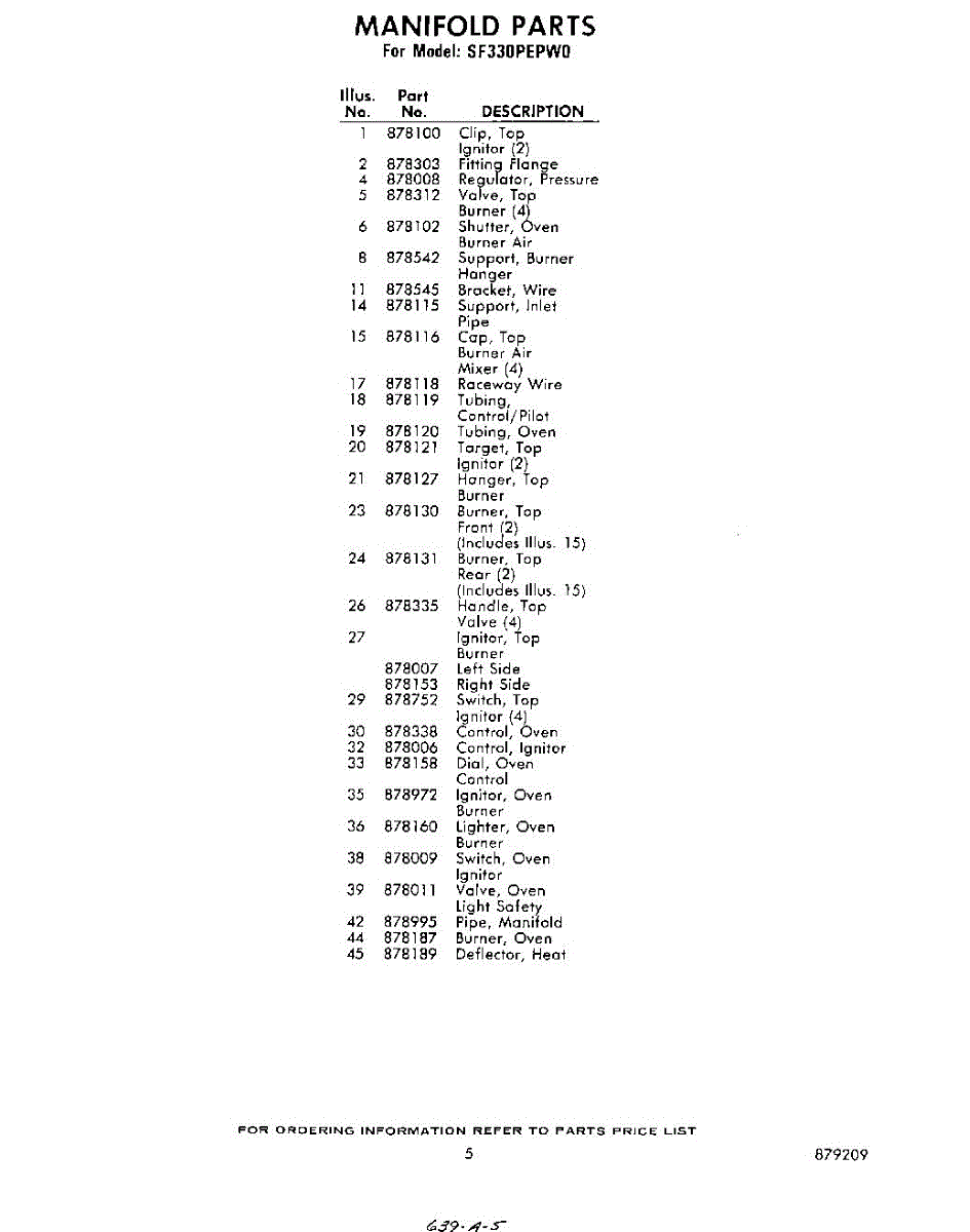 Parts for Whirlpool SF330PEPW0: 05 - Section Parts