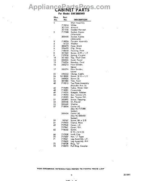 Parts for Whirlpool SHF3800W0: 03 - Section Parts