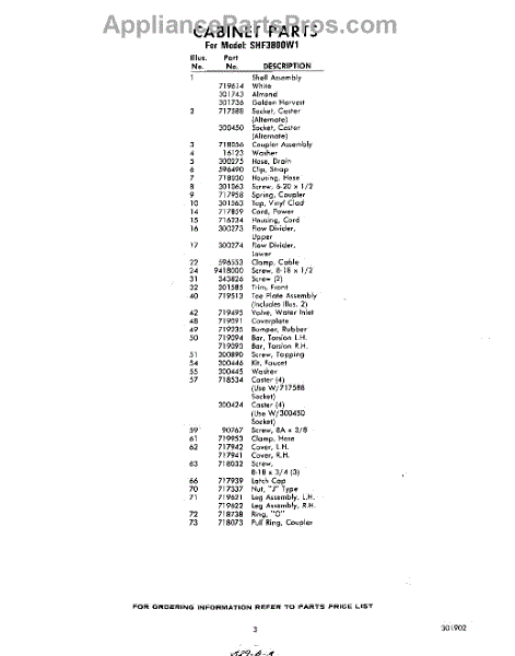 Parts for Whirlpool SHF3800W1: 03 - Section Parts