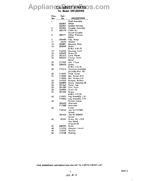 Parts for Whirlpool SHF3804W0: 03 - Section Parts