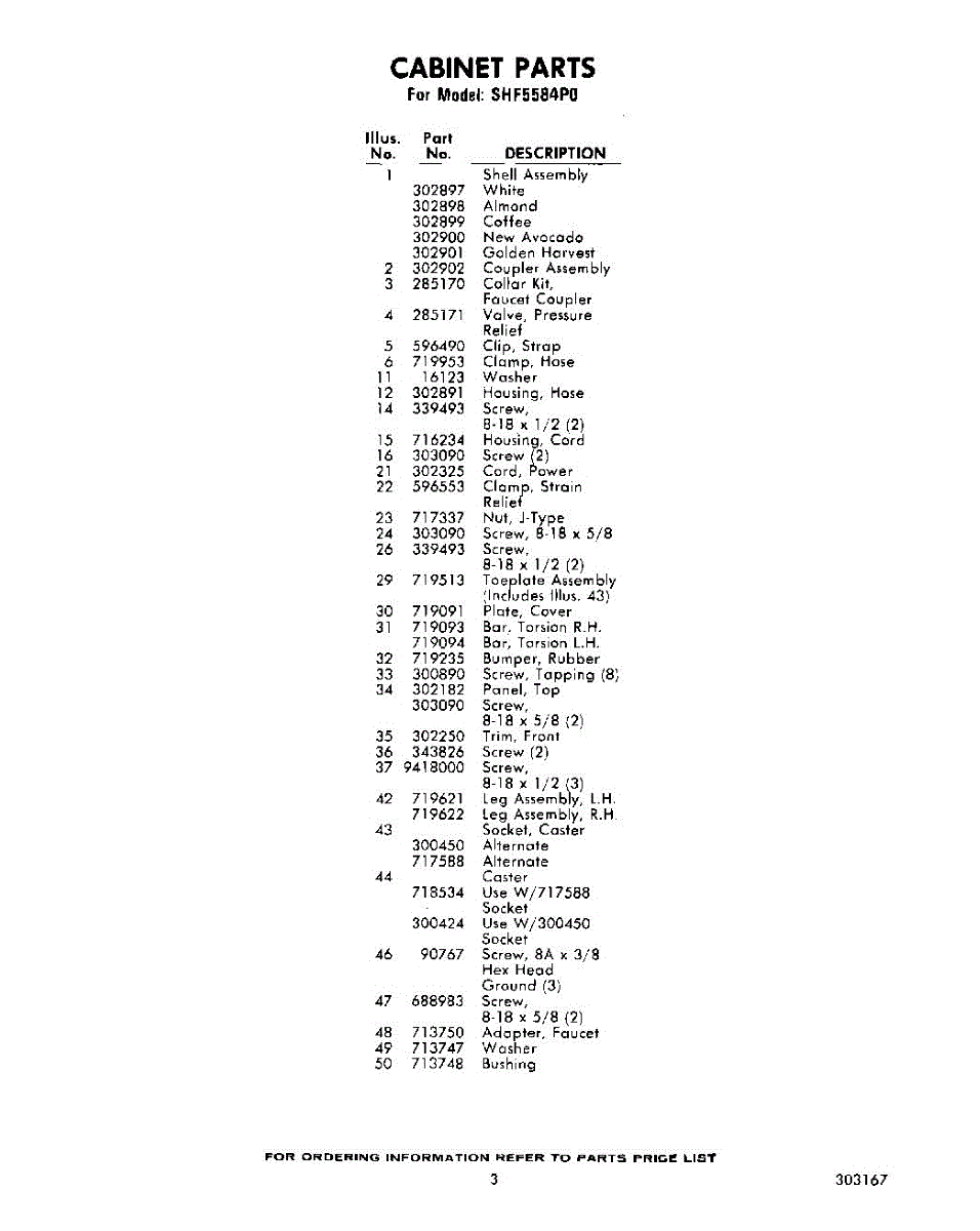 Parts for Whirlpool SHF5584P0: 03 - Section Parts