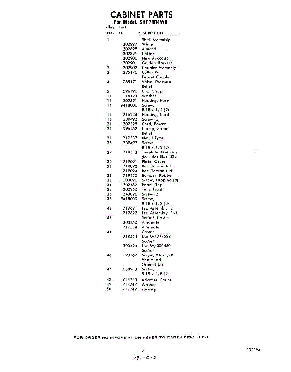 Parts for Whirlpool SHF7804W0: 03 - Section Parts