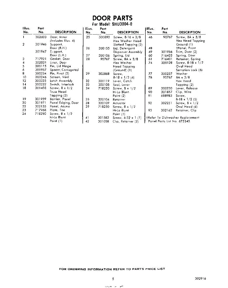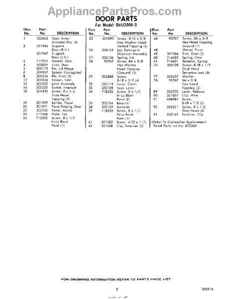 Parts for Whirlpool SHU30040: 05 - Section Parts