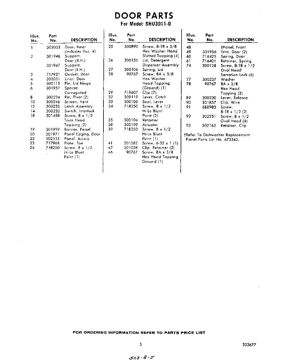 Parts for Whirlpool SHU30110: 05 - Section Parts
