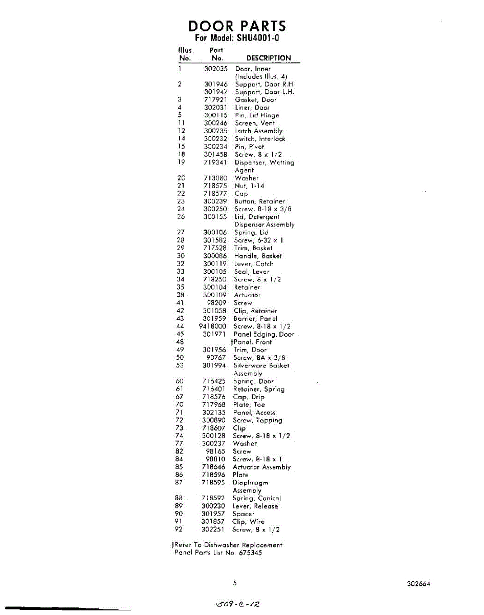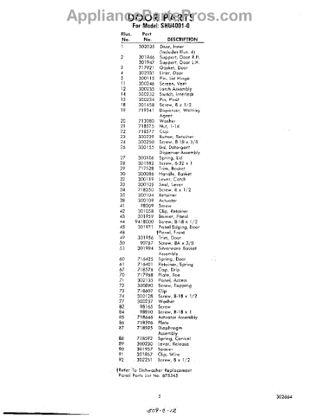 Parts for Whirlpool SHU40010: 05 - Section Parts