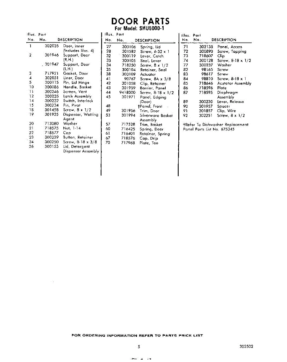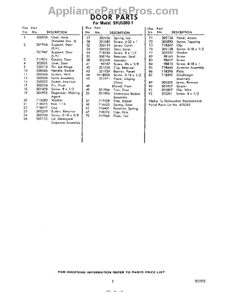 Parts for Whirlpool SHU50001: 05 - Section Parts