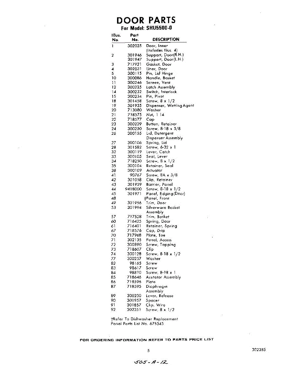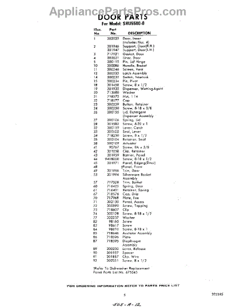 Parts for Whirlpool SHU55000: 05 - Section Parts