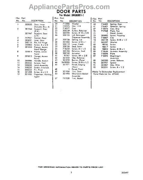 Parts for Whirlpool SHU60011: 05 - Section Parts