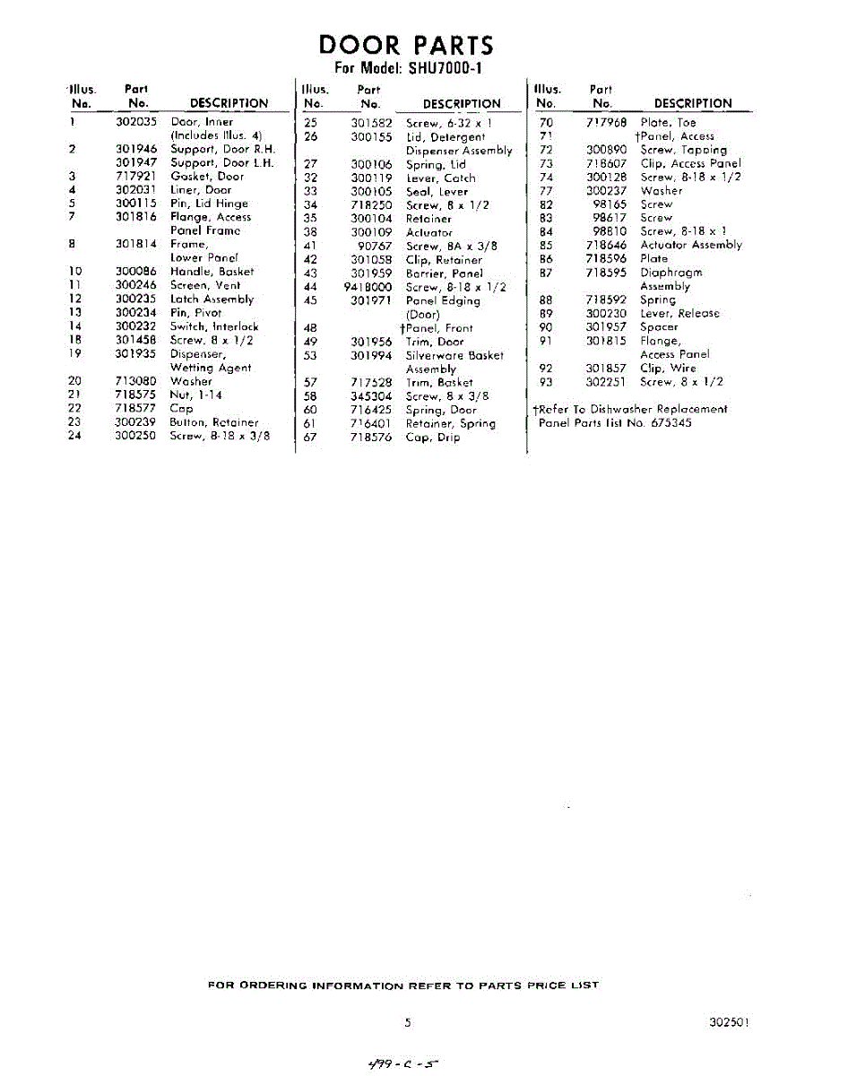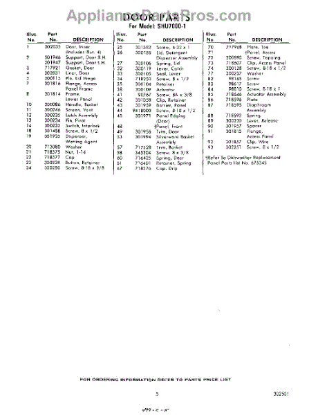 Parts for Whirlpool SHU70001: 05 - Section Parts