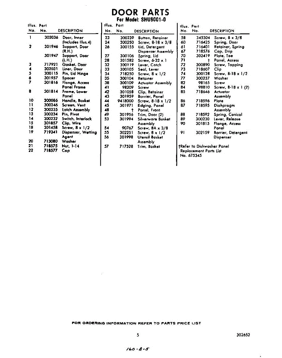 Parts for Whirlpool SHU90010: 05 - Section Parts