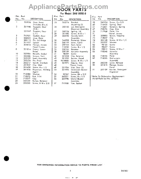 Parts for Whirlpool SHU99000: 05 - Section Parts