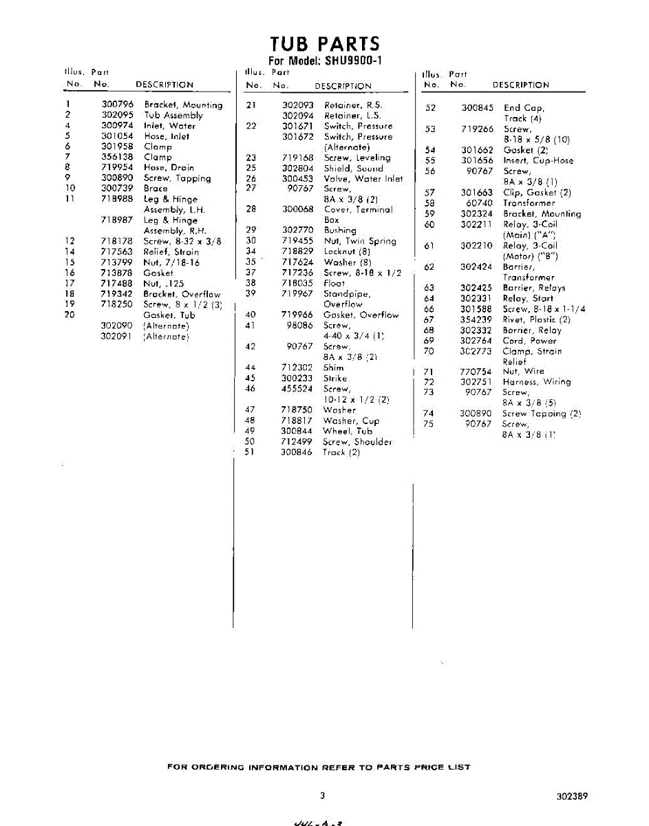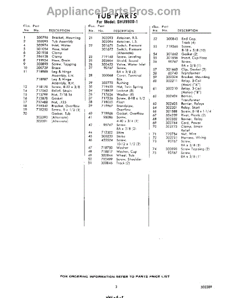 Parts for Whirlpool SHU99001: 03 - Section Parts