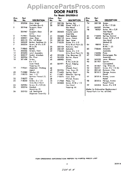 Parts for Whirlpool SHU99040: 05 - Section Parts