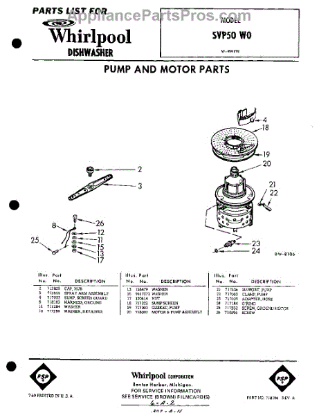Parts for Whirlpool SVP50W0: 01 - Section Parts