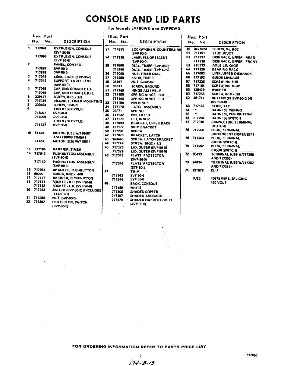 Parts for Whirlpool SVP80W0: 05 - Section Parts