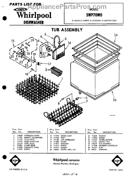 Parts for Whirlpool SWP70W0: 01 - Section Parts