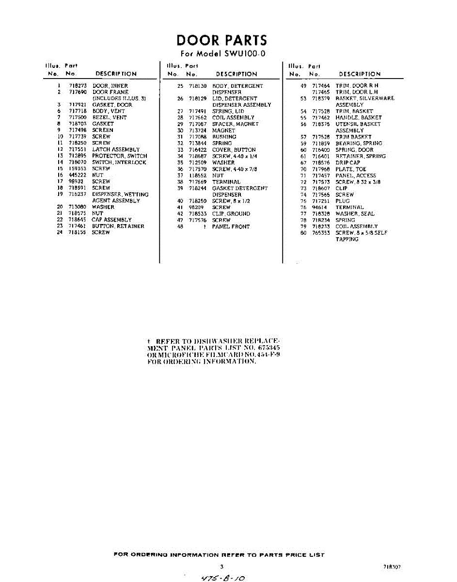 Parts for Whirlpool SWU100W0: 03 - Section Parts