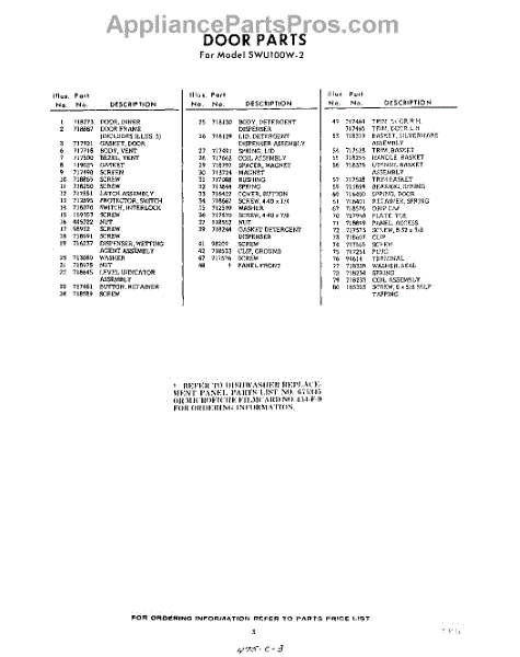 Parts for SWU100W2
