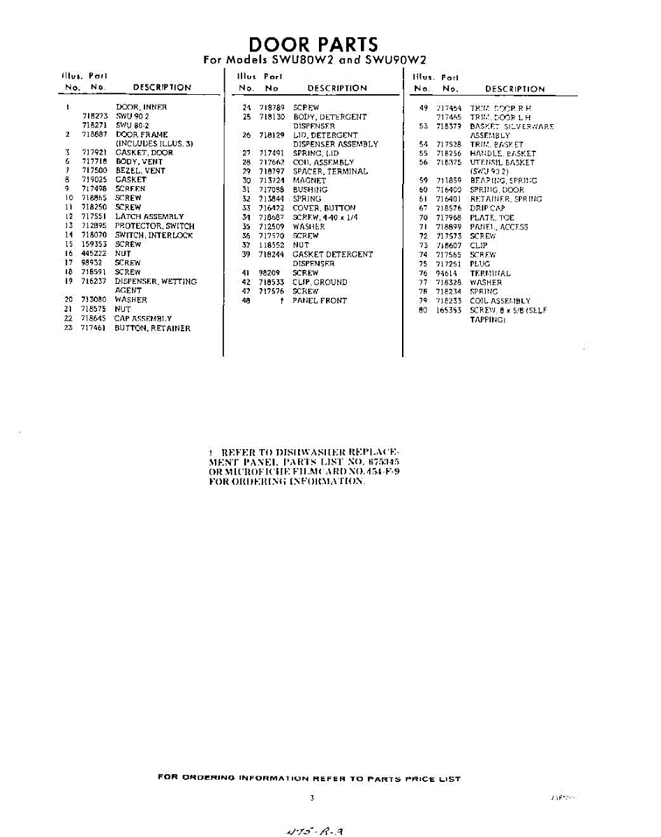 Parts for SWU80W2