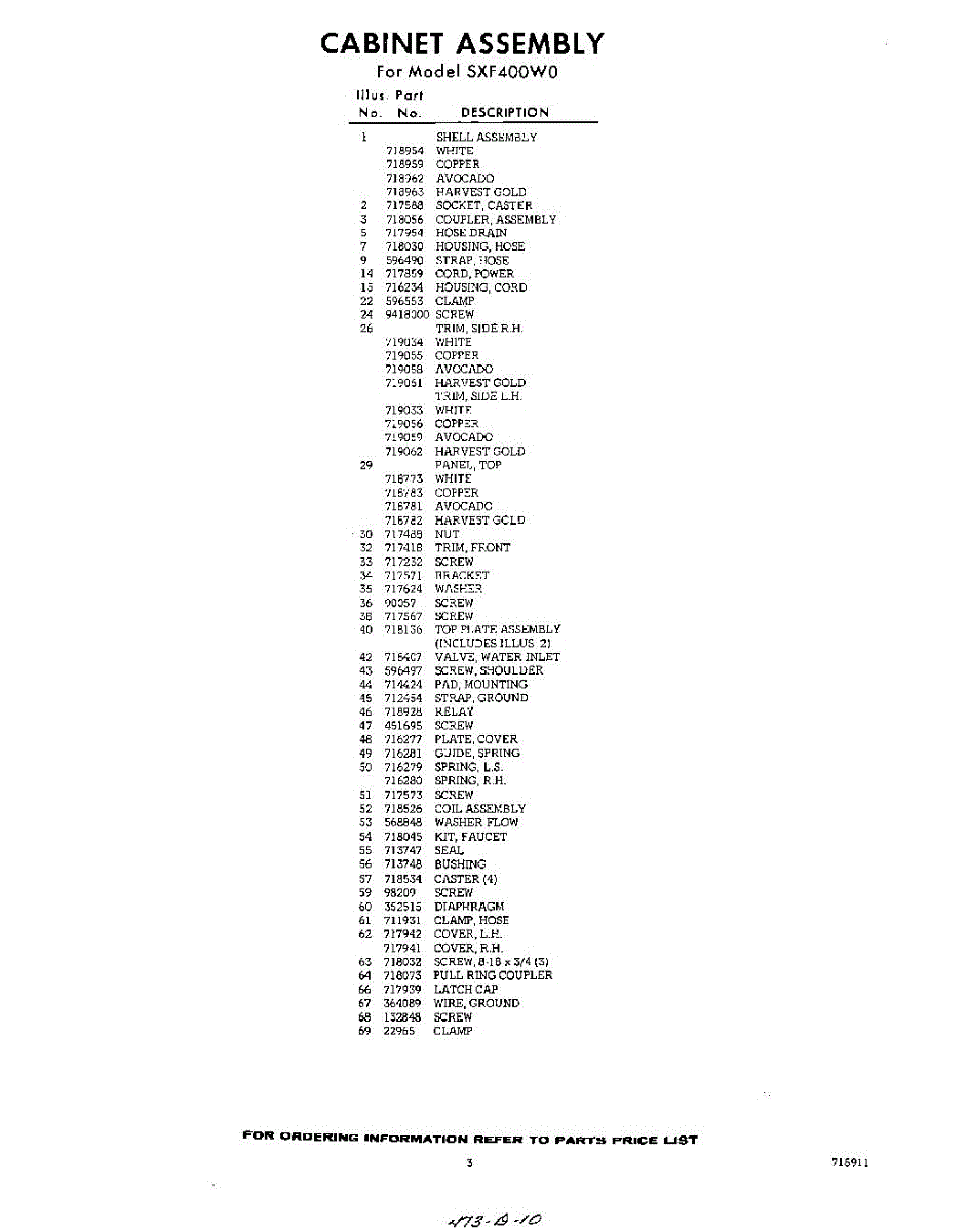 Parts for Whirlpool SXF400W0: 03 - Section Parts