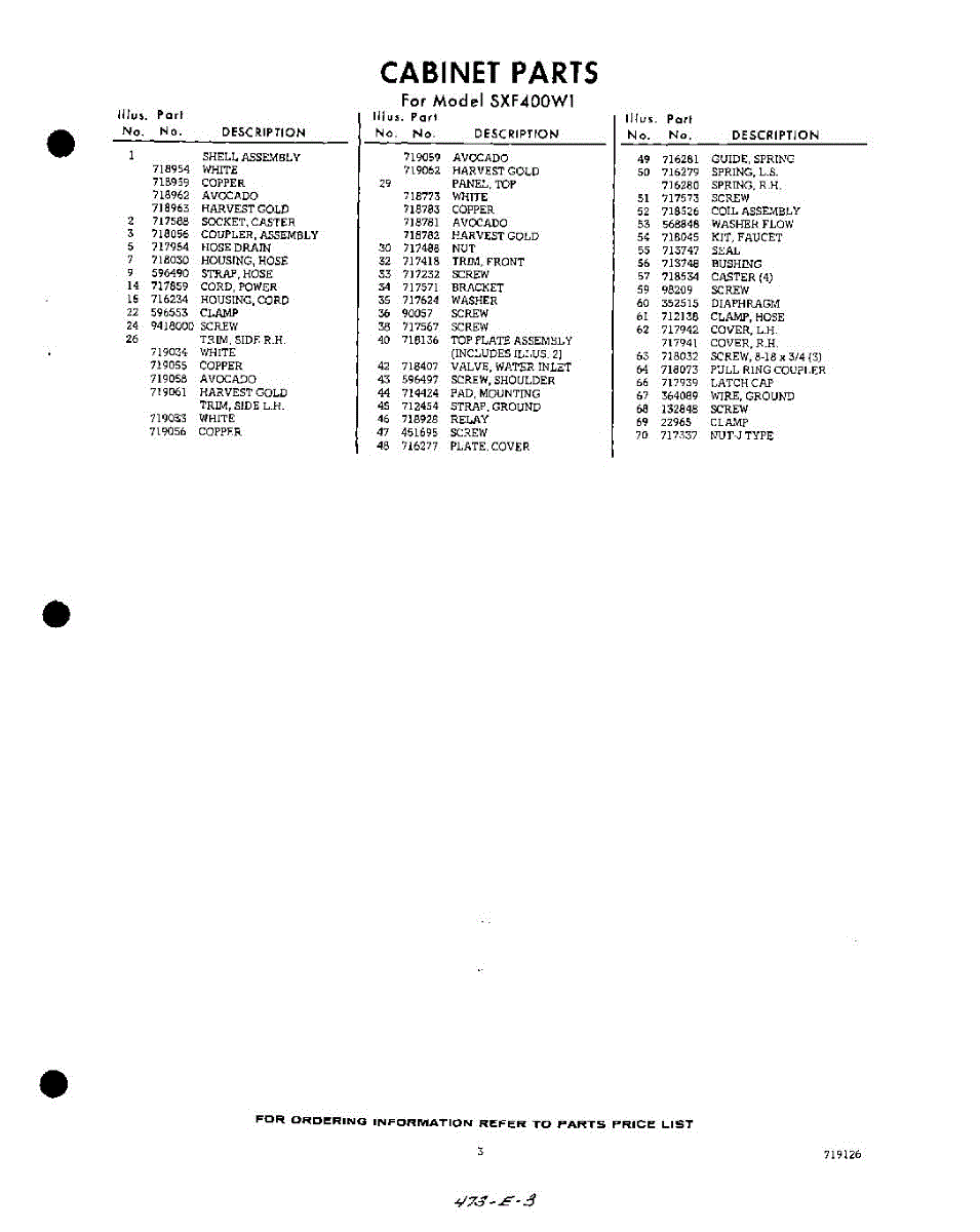 Parts for Whirlpool SXF400W1: 03 - Section Parts