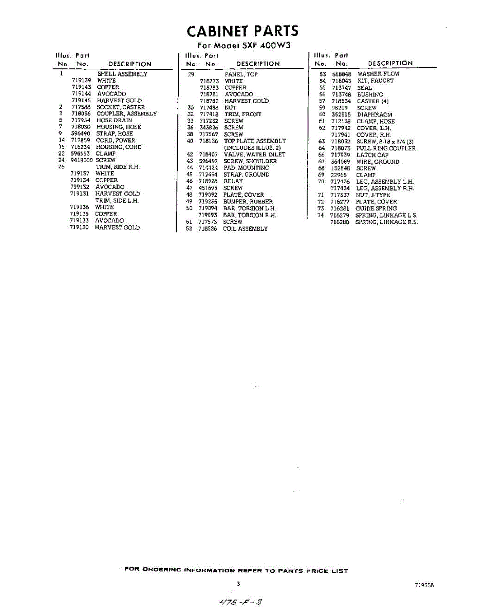 Parts for Whirlpool SXF400W3: 03 - Section Parts