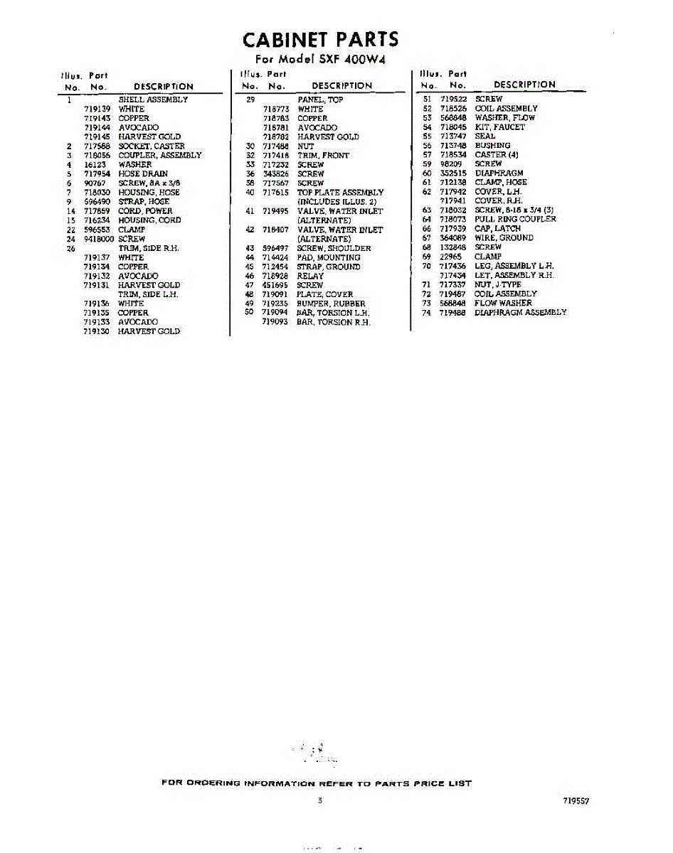 Parts for Whirlpool SXF400W4: 03 - Section Parts