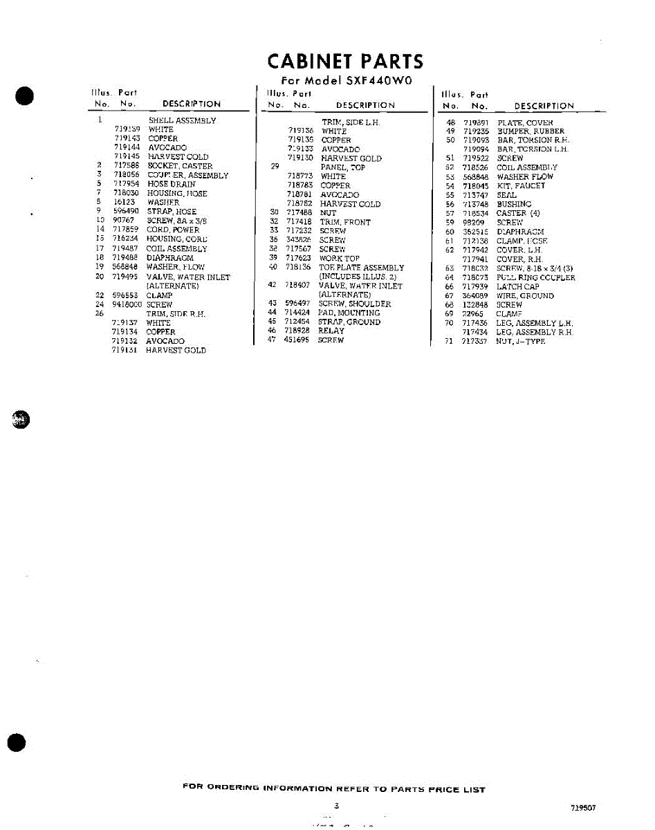 Parts for Whirlpool SXF440W0: 03 - Section Parts