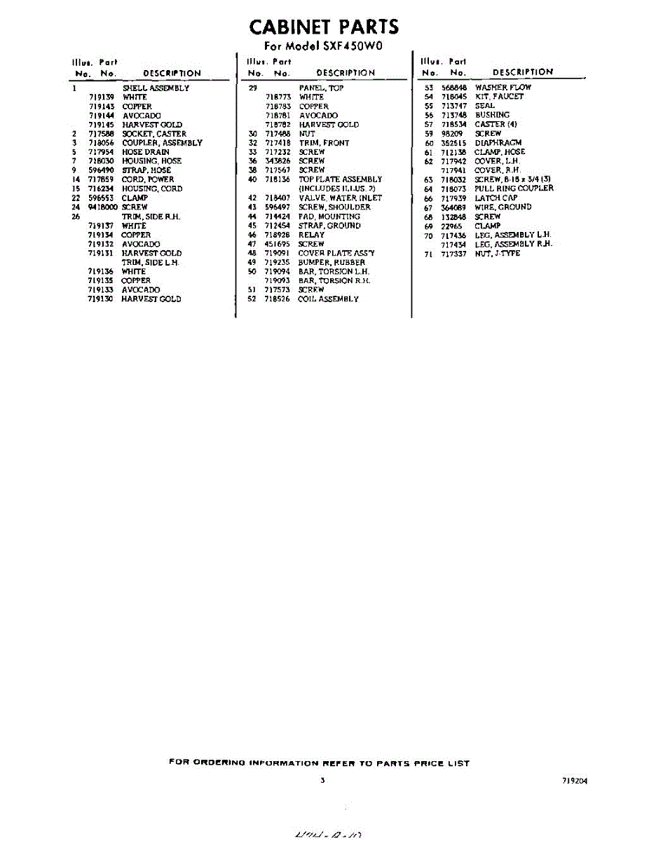 Parts for Whirlpool SXF450W0: 03 - Section Parts