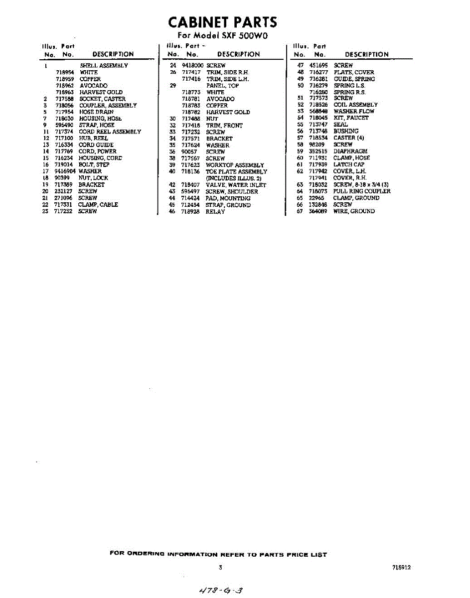 Parts for Whirlpool SXF500W0: 03 - Section Parts