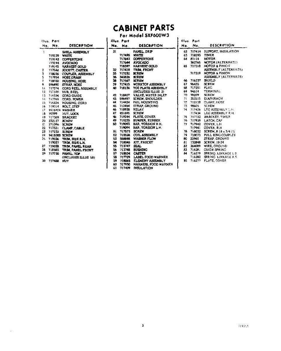 Parts for Whirlpool SXF600W3: 03 - Section Parts