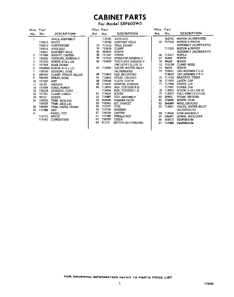 Parts for Whirlpool SXF600W5: 03 - Section Parts