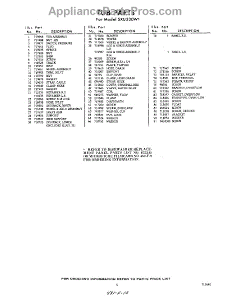 Parts for Whirlpool SXU330W1: 05 - Section Parts