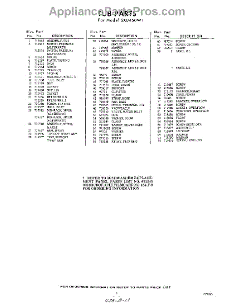 Parts for Whirlpool SXU450W1: 05 - Section Parts